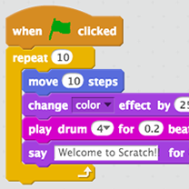 Neste software você pode usar imagens, vídeos, sons e textos que podem ser combinados para criar jogos, animações, histórias interface entre outros. O scratch possui blocos que você pode combiná-los, realizando criações a partir da sua imaginação. As pessoas que criam projetos nesse site são chamados scratchers!